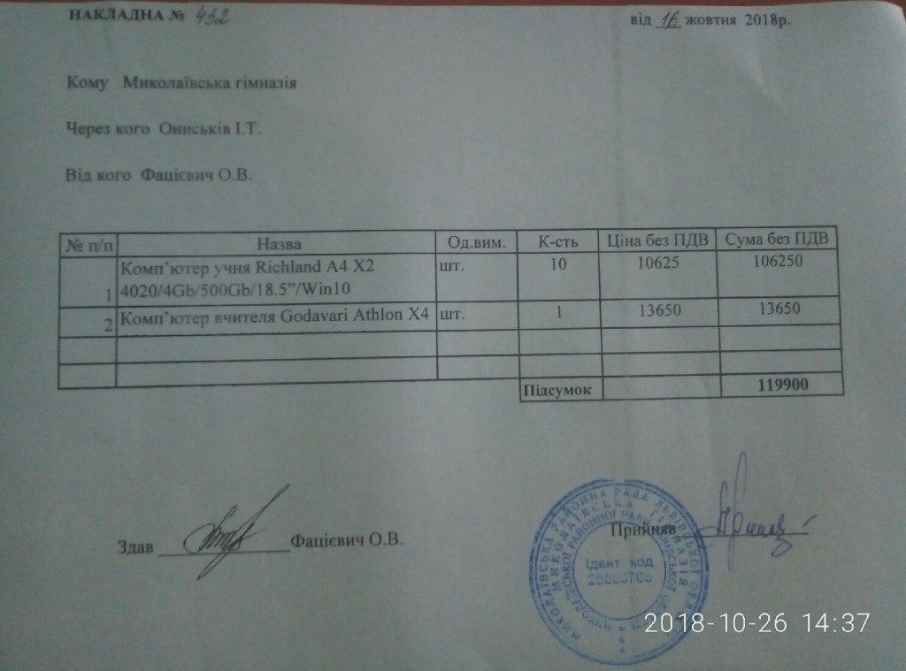 18. Придбання інтерактивних панеле й (3 шт.) на суму 361638 грн.