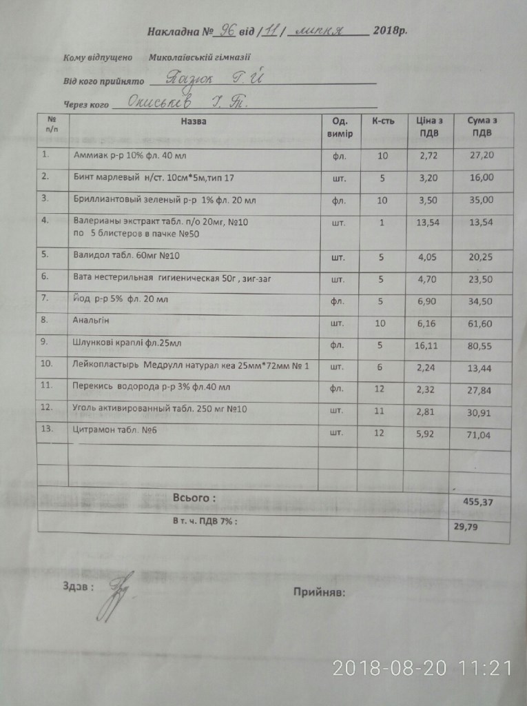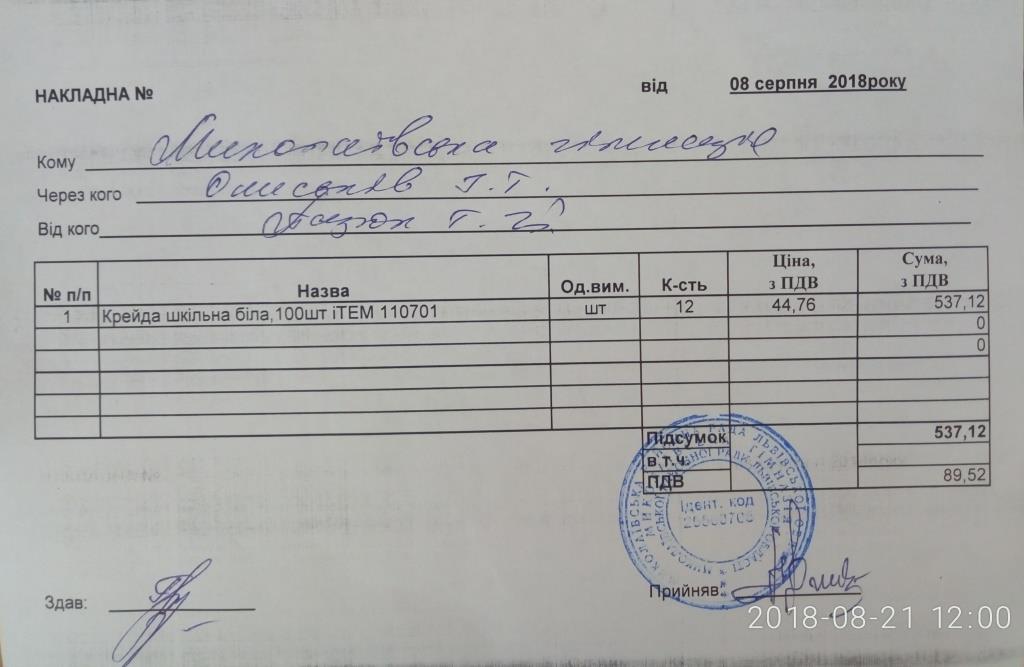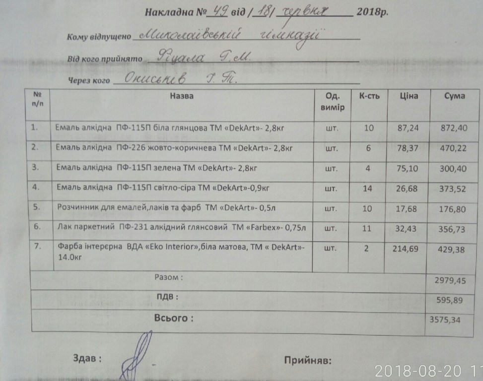 13. Накладні на: документацію, фарбу, крейду, медикаменти, папір.